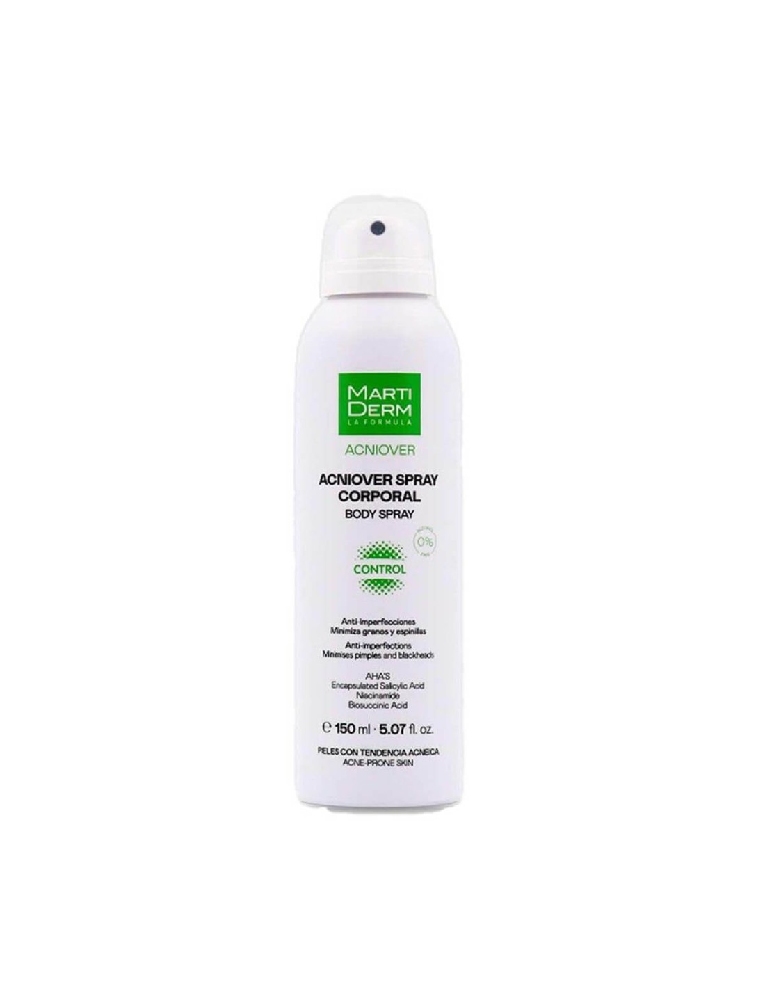 Martiderm Acniover Körperspray ist ein Spray, das entwickelt wurde, um das Auftreten von Pickeln und Mitessern an großflächigen Körperstellen, wie Brust und Rücken, zu verhindern. Empfohlen für zu Akne neigende Haut.