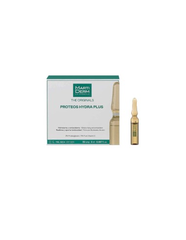 Die Proteos Hydra Plus Ampullen von MartiDerm bieten eine feuchtigkeitsspendende und straffende Formel mit Proteoglykanen und reinem Vitamin C, die intensive Feuchtigkeit, Leuchtkraft und antioxidative Wirkung bieten. Ideal zur Reduktion von Falten und Verbesserung der Hautfestigkeit, wirken die Ampullen bereits bei der ersten Anwendung, wodurch die Haut weicher und revitalisiert wird.