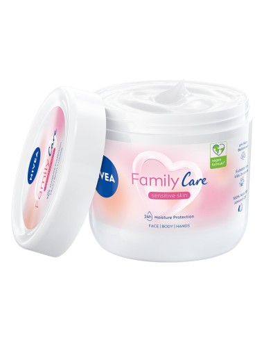 Nivea Family Care ist eine ideale Feuchtigkeitscreme für die ganze Familie (Erwachsene und Kinder ab 3 Jahren), die besonders für empfindliche Haut geeignet ist. Sie kann für das Gesicht, den Körper und die Hände verwendet werden.
